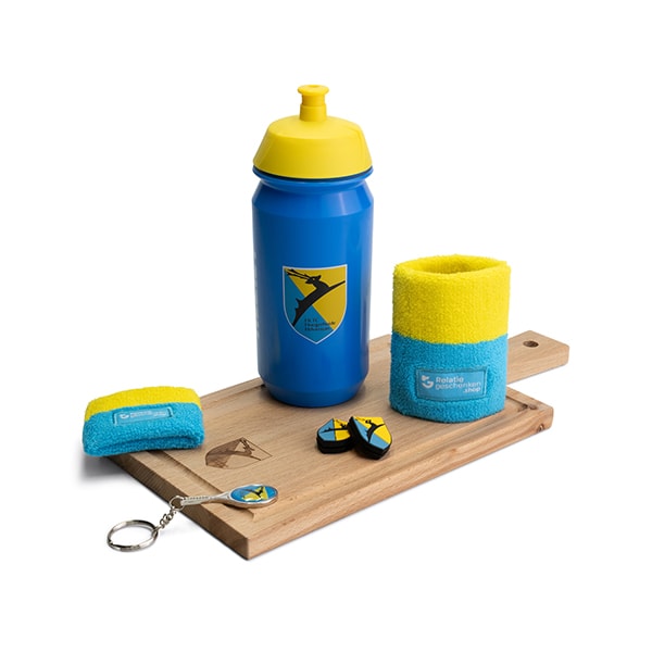 Hoogerheide tennisvereniging voor hun toernooi een bidon, zweetbandjes, sleutelhanger, borrelplankje en demper